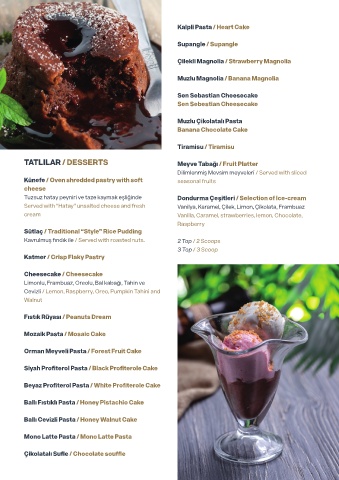 Served with “Hatay” unsalted cheese and fresh Vanilya, Karamel, Çilek, Limon, Çikolata, Frambuaz