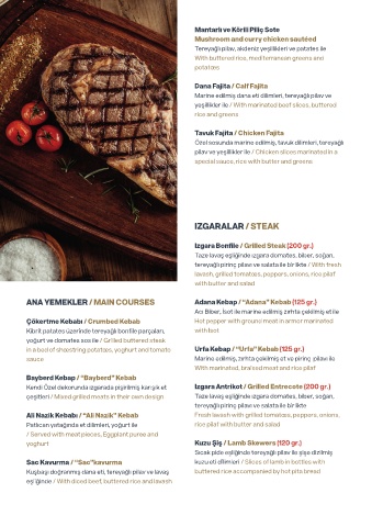 ANA YEMEKLER / MAIN COURSES Adana Kebap / “Adana” Kebab (125 gr.)