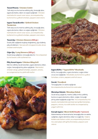 chicken wings, grilled tomatoes, peppers, onions, Izgara Köfte / “Izgara Köfte” Meatballs