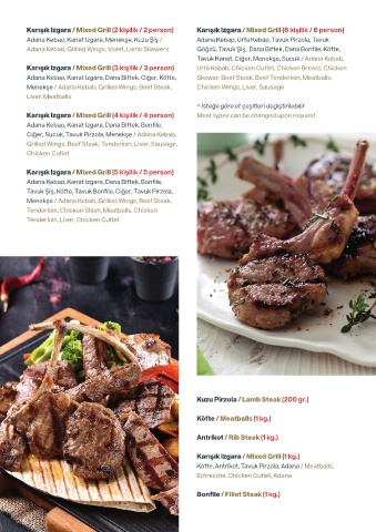 Adana Kebap, Kanat Izgara, Dana Biftek, Bonfile,